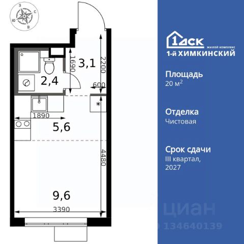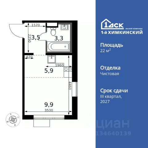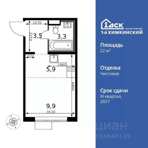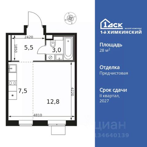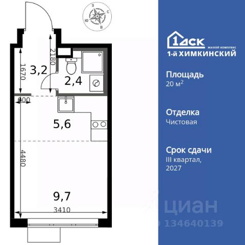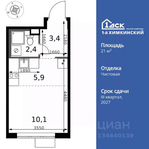 УСПЕЙ ПО СЕМЕЙНОЙ ИПОТЕКЕ БЕЗ НАЦЕНКИ! От 25 000 рублей в месяц! Прямая продажа от застройщика! Жилой Комплекс класса Комфорт. Продаётся квартира-студия номер 7 общей площадью 25.4 кв.м. на 2-м этаже 17 этажного здания. Отделка Whitebox. Особенности квартиры: - Линейная планировка - максимальная функциональность и удобство. - Увеличенное количество окон - дополнительное освещение и свежий воздух. - Линейная кухня - функциональность и практичность в одном решении. - Ниша под шкаф - компактное и удобное место для вещей. Квартира с предчистовой отделкой (White box). Вам не придется заниматься черновыми и трудоёмкими работы, а чистовую отделку и дизайн - сделайте на свой вкус. Информация о комплексе: Квартал класса комфорт плюс, где современное городское пространство граничит с удивительной природой вокруг. 1-й Химкинский расположен на территории в 102 га и органично вписан в природное окружение Химкинского леса и канала им. Москвы. В проекте предусмотрена богатая коммерческая инфраструктура с собственным торговым центром, общеобразовательные учреждения и социальные объекты. Изюминкой жилого комплекса будут спортивно-оздоровительный комплекс с термами и SPA и семейный парк развлечений. Транспортная доступность: ЖК "1-й Химкинский" дает возможность выбрать любой способ передвижения как до города, так и до самых разных объектов, которые могут представлять интерес для его жителей. Не важно, какой способ передвижения вы предпочитаете, успевать всегда и везде можно вне зависимости от выбора транспорта. - 8 мин. пешком (800 м) до остановки "Золотая Арка" -10 мин пешком (1 км) до остановки "Поворот на Ивакино" Внутренняя инфраструктура: - Безопасность: закрытые дворы без машин, безбарьерная среда и сквозные подъезды, камеры на детских площадках с возможностью трансляции на смартфоне - Идеальный отдых в кругу семьи: семейный парк развлечений на территории, торговый центр (2-х этажный) общей площадью более 8 тыс. кв. м с фудкортом - Образование: 3 детских сада и современная муниципальная школа на 2450 мест - Спортивная среда: закольцованный веломаршрут с навигацией, спортивный комплекс с термами, закрытый тренажерный зал и зоны ворк-аута - Социальные объекты: поликлиника со станцией скорой помощи, пожарное депо - Подземный паркинг и кладовые помещения на -1 этаже, станция техобслуживания и автомойка на территории