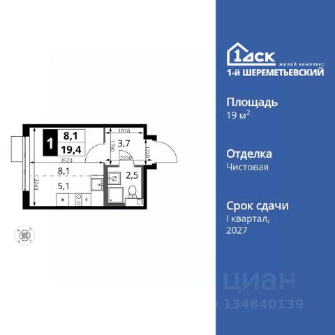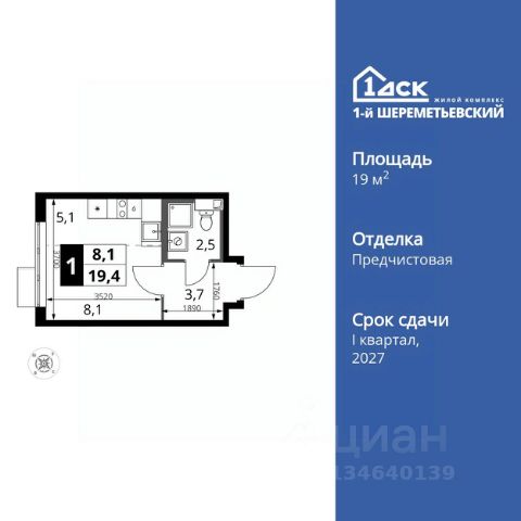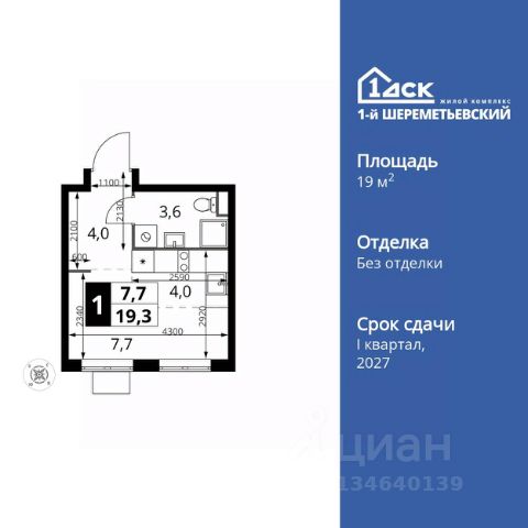Прямая продажа от застройщика! Жилой Комплекс класса Комфорт Плюс. Продаётся квартира-студия номер 1072 общей площадью 19.3 кв.м. на 10-м этаже 17 этажного здания. Без отделки. Особенности квартиры: - Линейная планировка - максимальная функциональность и удобство. - Гибкая планировка - создайте пространство по своему вкусу. - Ниша под шкаф - компактное и удобное место для вещей. Информация о комплексе: ЖК 1-й Шереметьевский расположен в самом центре Подрезково, от него всего 6 минут пешком до одноименной станции ж/д и планируемой к открытию МЦД-3. В комплексе яркие и уютные, лобби, большая колясочная, лапомойка. Благодаря гостевому санузлу на 1 этаже прогулки станут по-настоящему долгими. Два лифта пассажирский и грузовой.Во всех корпусах 1-го Шереметьевского там устроены кладовые, а в корпусах 3-5 есть подземный паркинг. В ЖК 1-й Шереметьевский разнообразие площадей и планировок. Большие кухни-гостиные: в них два окна или больше. Во всех квартирах площадью от 40 кв.м. и выше спроектировано 2 санузла. Большие остекленные лоджии с отделкой. Система Умная квартира, реализованная в 1-м Шереметьевском. В каждой квартире установлены датчики протечек и запорные вентили с электроприводом, которые самостоятельно перекрывают воду в случае аварии. Мобильное приложение управляет группами электропотребителей: даже если вы забыли утюг включенным, можно обесточить его дистанционно. Транспортная доступность: - Общественный транспорт: До ближайших станций метро Планерной и Войковской около 40-50 минут на автобусе. 6 минут до ЖД станции Подрезково (МЦД-3) - Личный автотранспорт: Удобный выезд на Ленинградское шоссе позволяет быстро добираться до МКАДа и в центр Москвы, до платной трассы М11 и в аэропорт Шереметьево. 3 минуты до Ленинградского ш. 10 минут до платной трассы М11 15 минут до МКАД 20 минут до ст. м Войковская 25 минут до ст. м Планерная Внутренняя инфраструктура: 1-й Шереметьевский не только сокращает время, которое вы будете проводить в дороге. Но и предпринимает многое, чтобы вы меньше ездили и чаще ходили. На первых этажах корпусов разместятся фрешмаркеты и пункты выдачи маркетплейсов, салоны красоты и химчистки, кофейни и пекарни всё, что необходимо изо дня в день, но не заслуживает отдельной поездки на машине или такси. В квартале будут построены собственные школа и детский сад. Школа рассчитана на 1100 учеников. В ней будут 25-метровый бассейн и просторный атриум, медиатека. Детский сад рассчитана на 400 малышей. Здесь стильный дизайн и комфортные группы, большой физкультурный зал и просторный зал для занятия музыкой. Дворы без машин. Безопасные детские площадки. Вдоль корпусов организованы зоны тихого отдыха: детский гомон с далеких каруселей и горок не достигнет окон жителей. В квартале спроектирован закольцованный веломаршрут с понятной навигацией и парковками для двухколесного транспорта.
