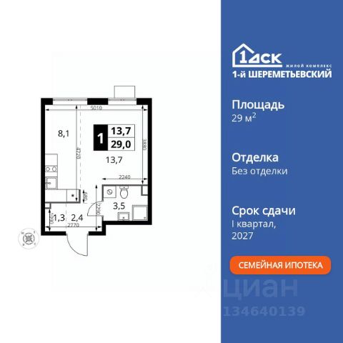 Прямая продажа от застройщика! Жилой Комплекс класса Комфорт Плюс. Продаётся квартира-студия номер 474 общей площадью 23 кв.м. на 12-м этаже 16 этажного здания. Предчистовая отделка. Цена с учётом скидки. Особенности квартиры: - Организуем показ в удобное для вас время! - Линейная планировка - максимальная функциональность и удобство. - Увеличенная ширина окна/окон - больше света и визуального простора. - Гибкая планировка - создайте пространство по своему вкусу. - Можно оборудовать рабочее место - комфорт для работы и учёбы. - Линейная кухня - функциональность и практичность в одном решении. - Ниша под шкаф - компактное и удобное место для вещей. Квартира с предчистовой отделкой. Вам не придется заниматься черновыми и трудоёмкими работы, а чистовую отделку и дизайн - сделайте на свой вкус. Информация о комплексе: ЖК "1-й Шереметьевский" в центре Подрезково: 6 минут пешком до ж/д станции и МЦД-3. Яркие лобби, колясочная, лапомойка и гостевой санузел на первом этаже. Два лифта, кладовые и подземный паркинг в корпусах 3-5. Разнообразие планировок с большими кухнями-гостиными, двумя санузлами от 40 кв.м и остеклёнными лоджиями. Умный дом с защитой от протечек и мобильным управлением электроприборами. Транспортная доступность: - Общественный транспорт: До ближайших станций метро Планерной и Войковской около 40-50 минут на автобусе. 6 минут до ЖД станции Подрезково (МЦД-3) - Личный автотранспорт: Удобный выезд на Ленинградское шоссе позволяет быстро добираться до МКАДа и в центр Москвы, до платной трассы М11 и в аэропорт Шереметьево. - 3 минуты до Ленинградского ш. - 10 минут до платной трассы М11 - 15 минут до МКАД - 20 минут до ст. м Войковская - 25 минут до ст. м Планерная Внутренняя инфраструктура: "1-й Шереметьевский": жизнь в шаговой доступности. На первых этажах - магазины со свежими продуктами, кофейни, химчистки и салоны красоты для повседневных нужд без поездок. Собственная школа на 1100 учеников с бассейном и детский сад на 400 малышей с музыкальным залом. Дворы без машин, безопасные игровые площадки и зоны тихого отдыха. Закольцованный веломаршрут с навигацией и парковками. Всё для комфортной жизни без лишних перемещений. Квартира с предчистовой отделкой - ваш дизайн без черновых работ