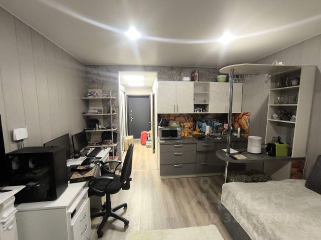 Удобная гардеробная зона с полками, большой с/у, и просторная кухня-гостиная с местом для рабочего стола и компьютера, раскладной диван, рулонные шторы по размерам на заказ со стороны кровати блэкаут, и со стороны кухни посветлее, Итальянские терморегуляторы на батареях отопления, кондиционер Haier работает как на тепло так и на холод.