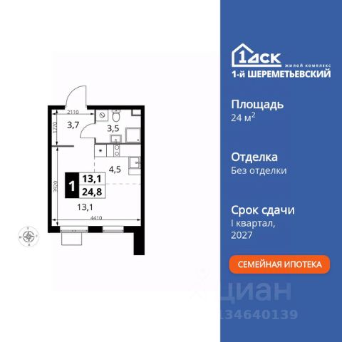 Прямая продажа от застройщика! Жилой Комплекс класса Комфорт Плюс. Продаётся квартира-студия номер 298 общей площадью 24.8 кв.м. на 11-м этаже 17 этажного здания. Без отделки. Особенности квартиры: - Организуем показ в удобное для вас время! - Линейная планировка - максимальная функциональность и удобство. - Можно оборудовать рабочее место - комфорт для работы и учёбы. - Ниша под шкаф - компактное и удобное место для вещей. Квартира без отделки. Чистый холст для воплощения интерьера вашей мечты. Информация о комплексе: ЖК "1-й Шереметьевский" в центре Подрезково: 6 минут пешком до ж/д станции и МЦД-3. Яркие лобби, колясочная, лапомойка и гостевой санузел на первом этаже. Два лифта, кладовые и подземный паркинг в корпусах 3-5. Разнообразие планировок с большими кухнями-гостиными, двумя санузлами от 40 кв.м и остеклёнными лоджиями. Умный дом с защитой от протечек и мобильным управлением электроприборами. Транспортная доступность: - Общественный транспорт: До ближайших станций метро Планерной и Войковской около 40-50 минут на автобусе. 6 минут до ЖД станции Подрезково (МЦД-3) - Личный автотранспорт: Удобный выезд на Ленинградское шоссе позволяет быстро добираться до МКАДа и в центр Москвы, до платной трассы М11 и в аэропорт Шереметьево. - 3 минуты до Ленинградского ш. - 10 минут до платной трассы М11 - 15 минут до МКАД - 20 минут до ст. м Войковская - 25 минут до ст. м Планерная Внутренняя инфраструктура: "1-й Шереметьевский": жизнь в шаговой доступности. На первых этажах - магазины со свежими продуктами, кофейни, химчистки и салоны красоты для повседневных нужд без поездок. Собственная школа на 1100 учеников с бассейном и детский сад на 400 малышей с музыкальным залом. Дворы без машин, безопасные игровые площадки и зоны тихого отдыха. Закольцованный веломаршрут с навигацией и парковками. Всё для комфортной жизни без лишних перемещений. Квартира без отделки - чистый холст для вашего интерьера.
