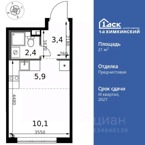Прямая продажа от застройщика! Жилой Комплекс класса Комфорт. Продаётся квартира-студия номер 345 общей площадью 20.9 кв.м. на 6-м этаже 6 этажного здания. Отделка Whitebox. Цена с учётом скидки. Особенности квартиры: - Линейная планировка - максимальная функциональность и удобство. - Увеличенная высота потолков - ощущение простора и легкости. Квартира с предчистовой отделкой (White box). Вам не придется заниматься черновыми и трудоёмкими работы, а чистовую отделку и дизайн - сделайте на свой вкус. Информация о комплексе: Квартал класса комфорт плюс, где современное городское пространство граничит с удивительной природой вокруг. 1-й Химкинский расположен на территории в 102 га и органично вписан в природное окружение Химкинского леса и канала им. Москвы. В проекте предусмотрена богатая коммерческая инфраструктура с собственным торговым центром, общеобразовательные учреждения и социальные объекты. Изюминкой жилого комплекса будут спортивно-оздоровительный комплекс с термами и SPA и семейный парк развлечений. Транспортная доступность: ЖК "1-й Химкинский" дает возможность выбрать любой способ передвижения как до города, так и до самых разных объектов, которые могут представлять интерес для его жителей. Не важно, какой способ передвижения вы предпочитаете, успевать всегда и везде можно вне зависимости от выбора транспорта. - 8 мин. пешком (800 м) до остановки "Золотая Арка" -10 мин пешком (1 км) до остановки "Поворот на Ивакино" Внутренняя инфраструктура: - Безопасность: закрытые дворы без машин, безбарьерная среда и сквозные подъезды, камеры на детских площадках с возможностью трансляции на смартфоне - Идеальный отдых в кругу семьи: семейный парк развлечений на территории, торговый центр (2-х этажный) общей площадью более 8 тыс. кв. м с фудкортом - Образование: 3 детских сада и современная муниципальная школа на 2450 мест - Спортивная среда: закольцованный веломаршрут с навигацией, спортивный комплекс с термами, закрытый тренажерный зал и зоны ворк-аута - Социальные объекты: поликлиника со станцией скорой помощи, пожарное депо - Подземный паркинг и кладовые помещения на -1 этаже, станция техобслуживания и автомойка на территории