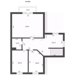 Площадь жилого здания: 2 этажа (около 200 м²)