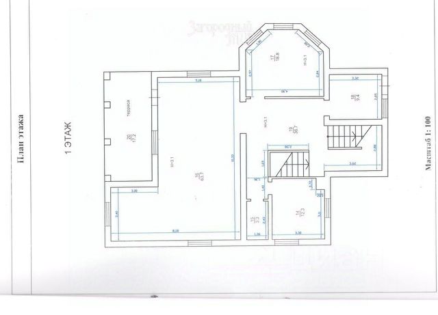 Коридор 10,3 кв.м, пол с подогревом керамогранит, деревянная лестница на второй этаж.