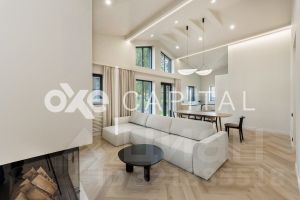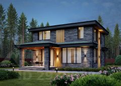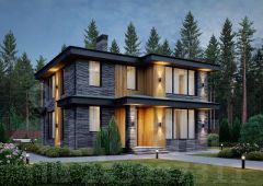 В архитектурном проекте данного дома продумано все до мельчайшей детали. Применение древесины, светлого и графитового цвета камня в экстерьере напоминает о природном анклаве, в котором расположен дом. Находясь в данном доме, ощущается особенная умиротворенность. Дом подходит для круглогодичного проживания всей семьи.
