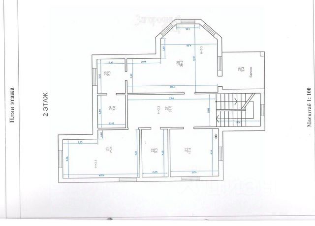 Три спальни на втором этаже (высота потолков 2,5 м) - 22,2 кв.м. , 13,4 кв.м. и 10,2 кв.м.