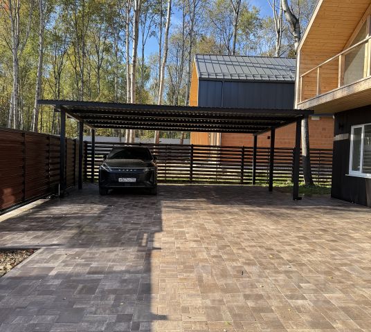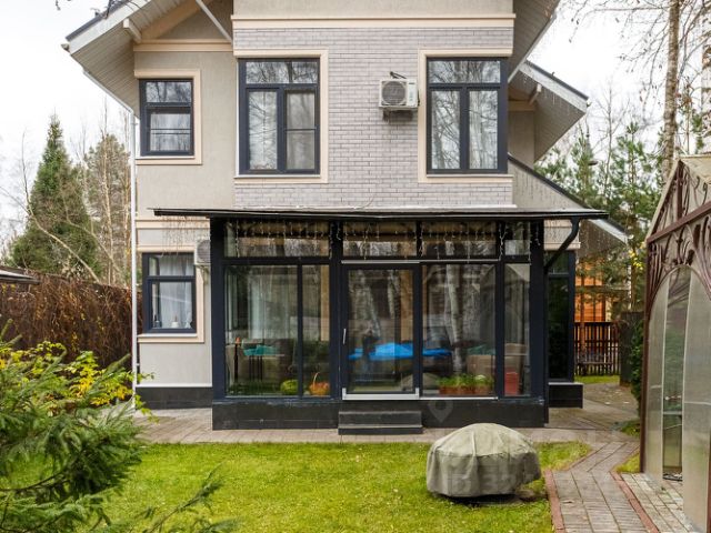 Лесной участок полностью огорожен и освещен, сделан дренаж и автополив. Въездные и гаражные ворота с автоматическим приводом. На участке организована детская площадка, оборудована летняя зона BBQ. На территории домовладения растут 16 вековых дубов.