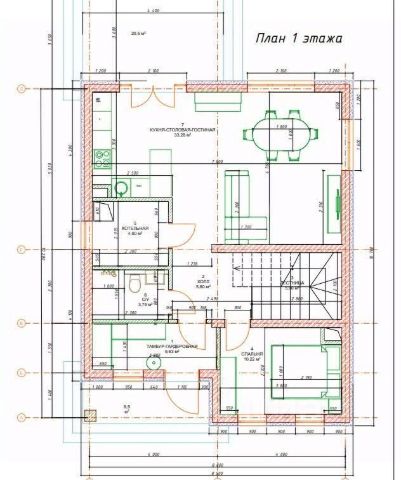 Общая площадь дома 277 кв.м. Состав помещений в доме: 1 этаж: гардеробная, каминная, кухня-столовая, гостевая спальня, душевая, котельная. 2 этаж: три спальни, кабинет, душевая комната, ванная комната. 3 этаж: открытая площадь, предназначение для двух зон спортивная и кинозал.