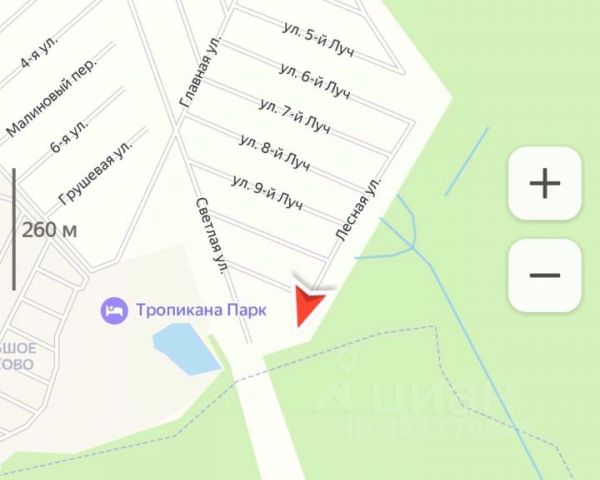 На удалении 500 метров от участка находится загородный комплекс "Тропикана Парк", который предоставляет большой комплекс услуг: гостиница, ресторан, бар, караоке, бассейн, баня и сауна, боулинг, бильярд, площадки для барбекю, спортивные площадки, детский городок, озеро с пляжем, рыбалка.