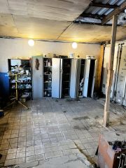 346 квадратных метров. Есть офисные комнаты и холодильные установки. Очень удобное транспортное расположение, помещение прям на съезде с дороги, что видно на фотографиях.