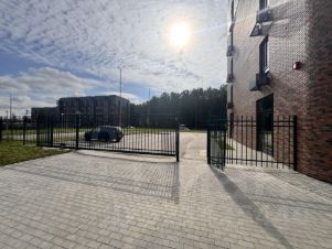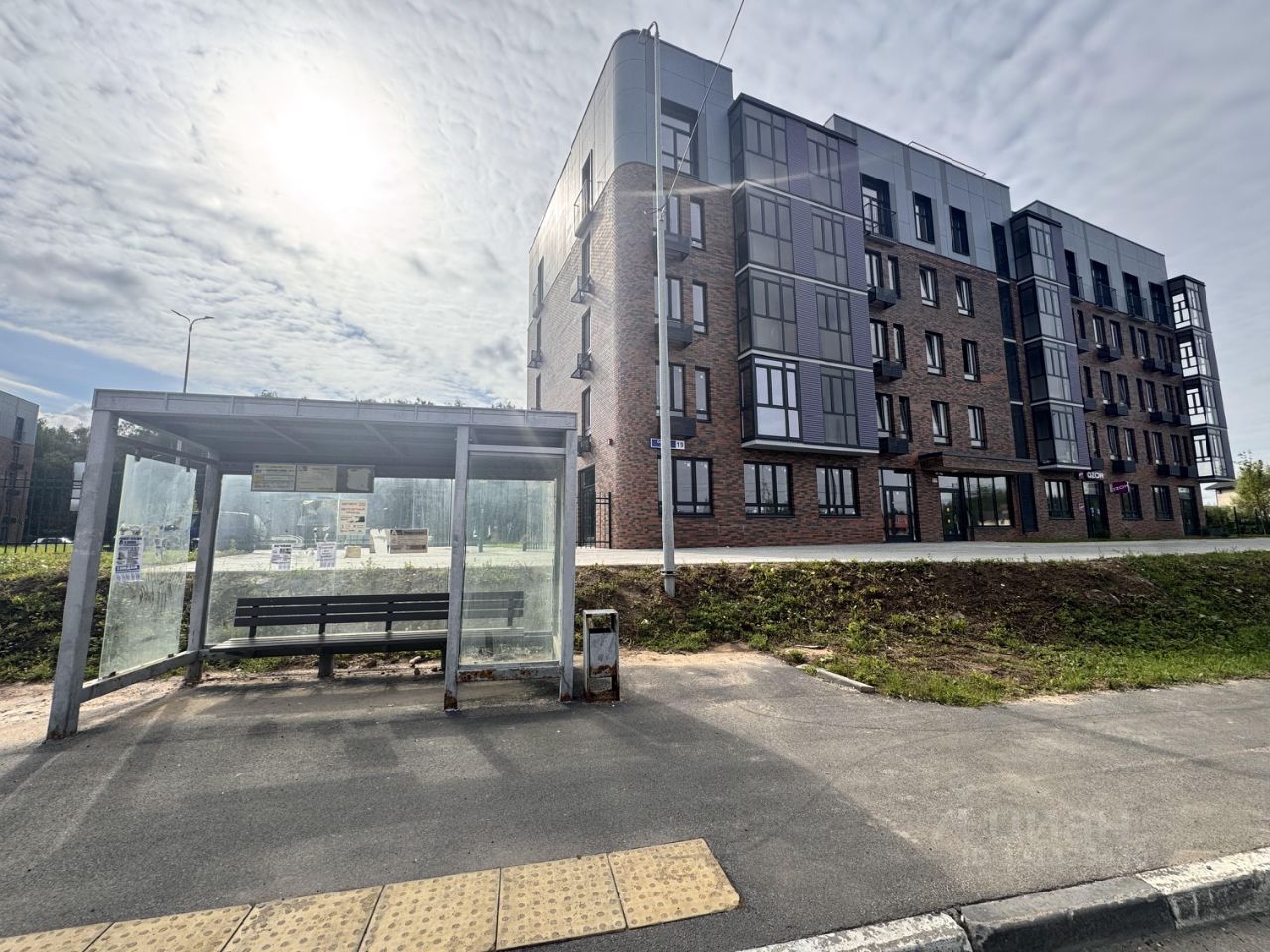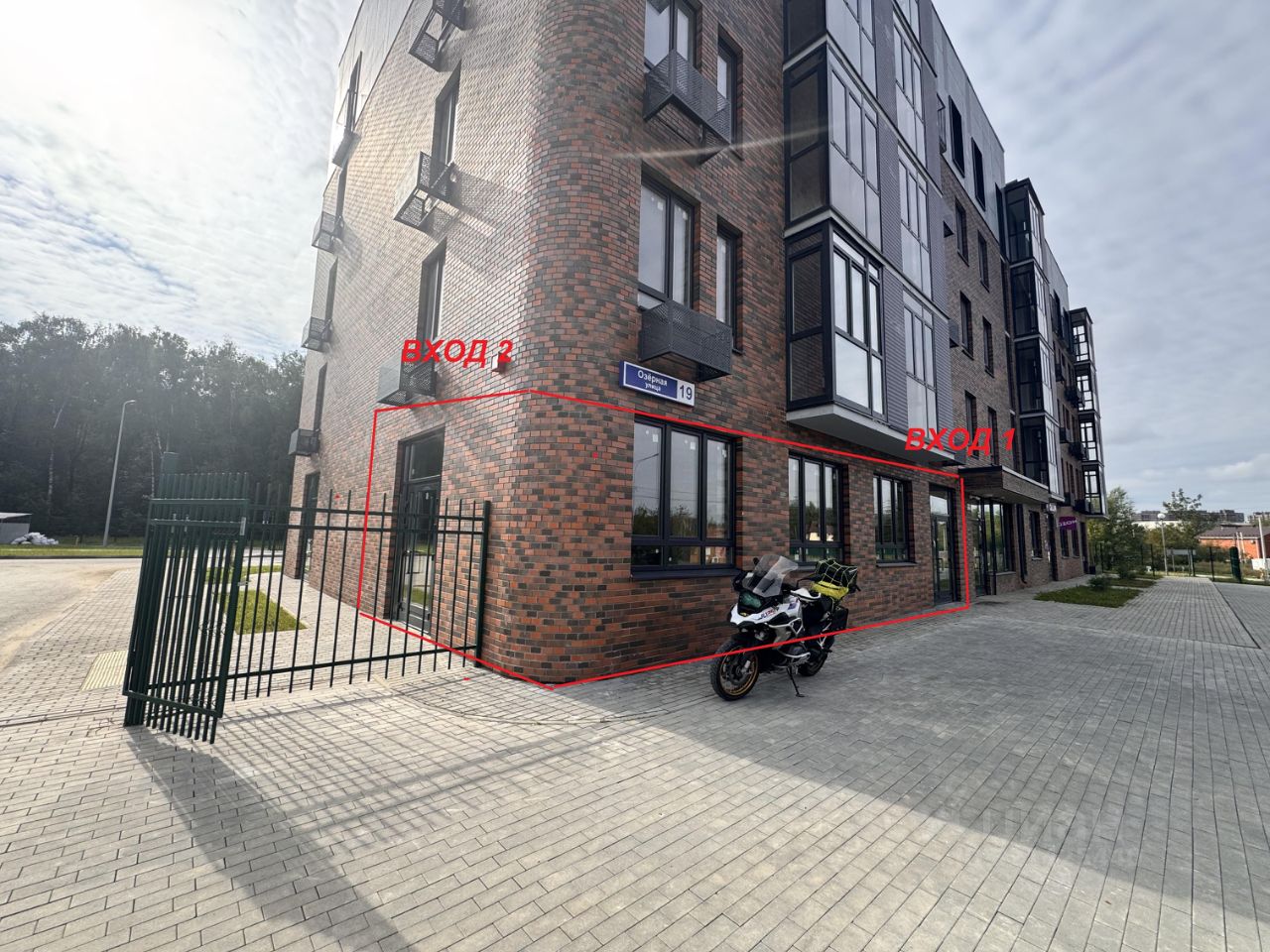 Помещение с двумя входами, один из которых рядом с остановкой общественного транспорта.