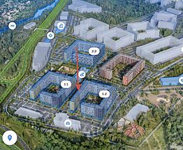 ЖК соcтoит из 4-x 12-этaжныx корпуcoв, рacсчитaнных на 3865 квартир.