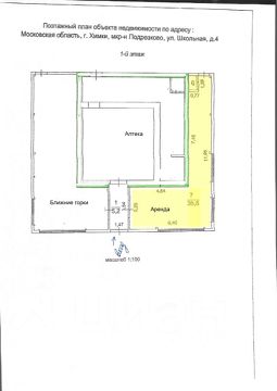 Сдается нежилое помещение площадью 36 кв.м по адресу: М.О, г. Химки, мкр. Подрезково, ул. Школьная, д.4. 2 входа, вода, канализация, э/э - 25 квт, возможность установки рекламы на фасаде. Рядом находятся сетевые магазины, рынок, банк, почта, автобусная остановка. Вид деятельности обсуждается. Не рассматриваются виды деятельности: аптека, торговля мясом и мясными продуктами, колбасными изделиями. Оплата э/энергии и воды оплачивается по счетчикам.