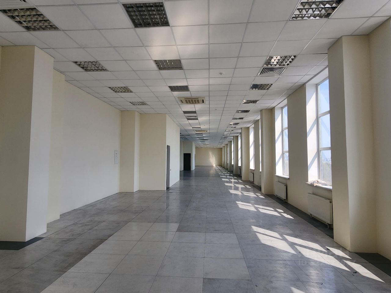 - Разделено на два больших блока с коридором между ними. При желании помещение можно удобно зонировать.