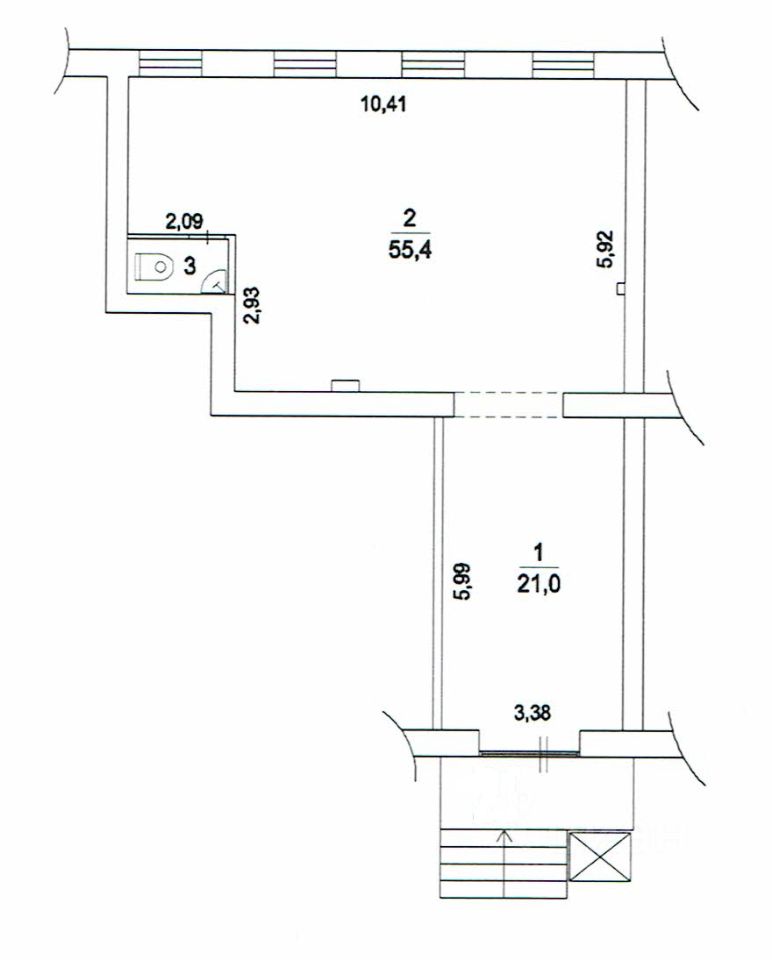 Большая площадь помещения позволяет удобно разместиться в любой конфигурации: с прилавками, с открытым доступом, оборудовать при необходимости комнату со складом.