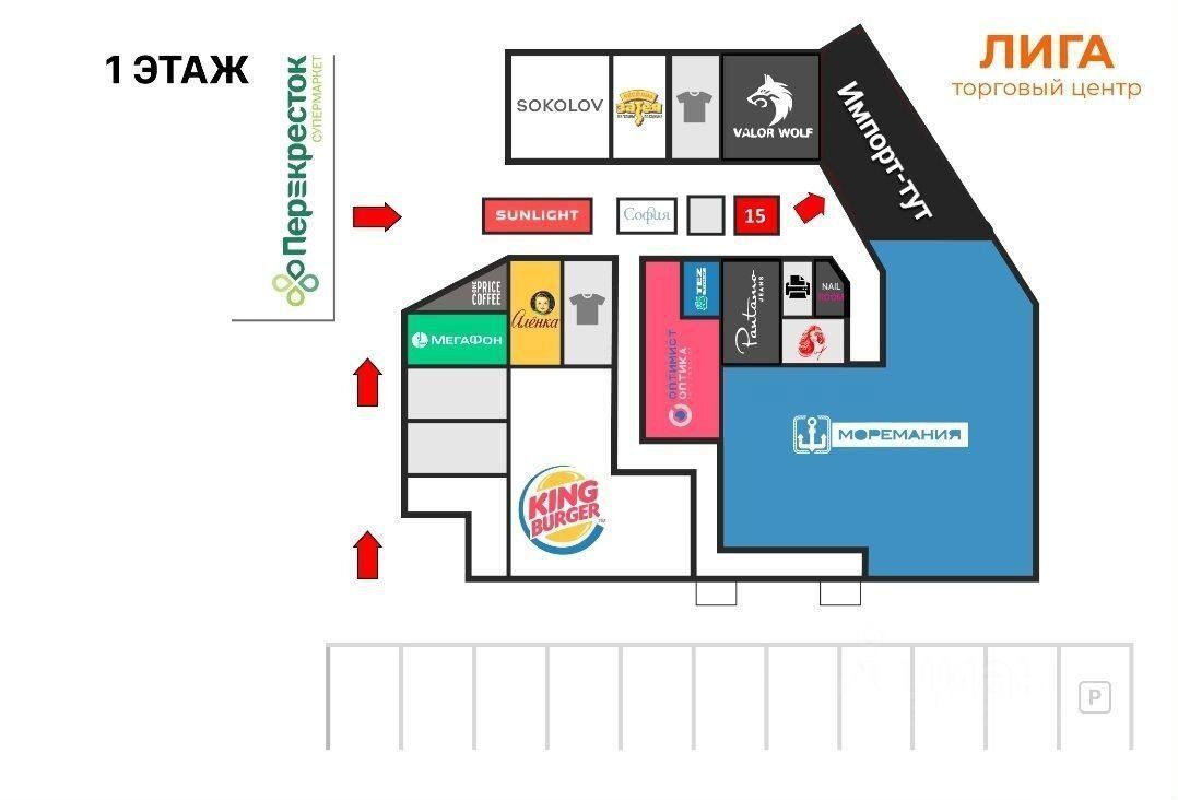 Якорные арендаторы: Перекрёсток в новом формате, М. Видео, Санлайт, Спортмастер, Днс, Соколов и другие.