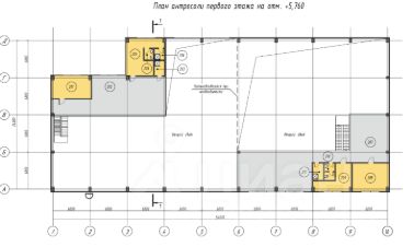 Площадь первого этажа 1107 кв.м., имеется антресоль для размещения офисов и подсобных помещений , площадью 350 кв.м.