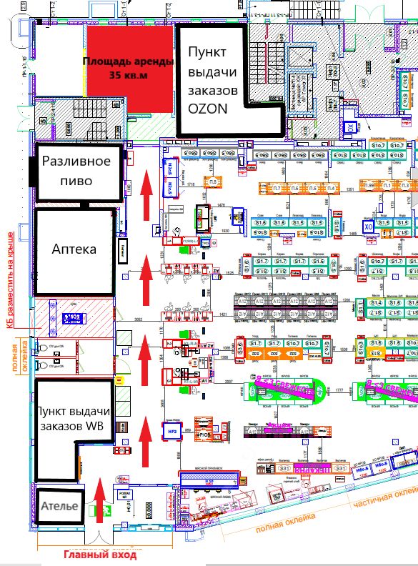 Просторное помещение 35 квадратных метров в оживленном торговом кластере.