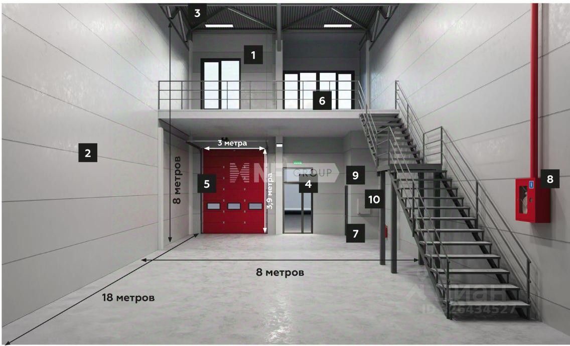• Нагрузка на пол до 8т с покрытием анти-пыль, ворота на уровне 0
