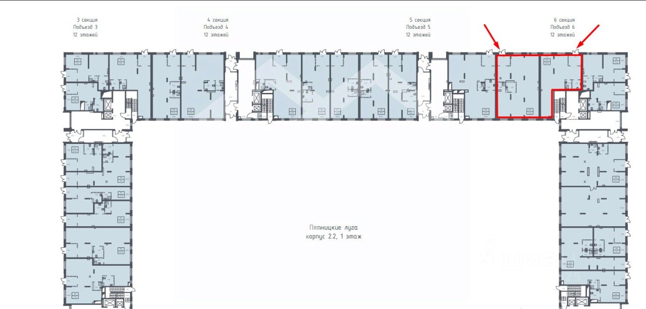 1072763-f . Предлагаем помещение свободного назначения формата street-retail в ЖК "Пятницкие луга", площадью 215.79 кв. м, расположенное на первом этаже 12-этажного жилого дома. Корпус: 2.2.