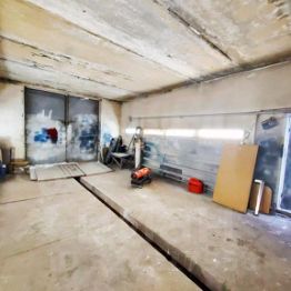 Правильная прямоугольная форма. Потолки 3,2 м. Полы бетон - есть возможность установки подъемников. Распашные ворота 3х3 на нулевой отметке.
