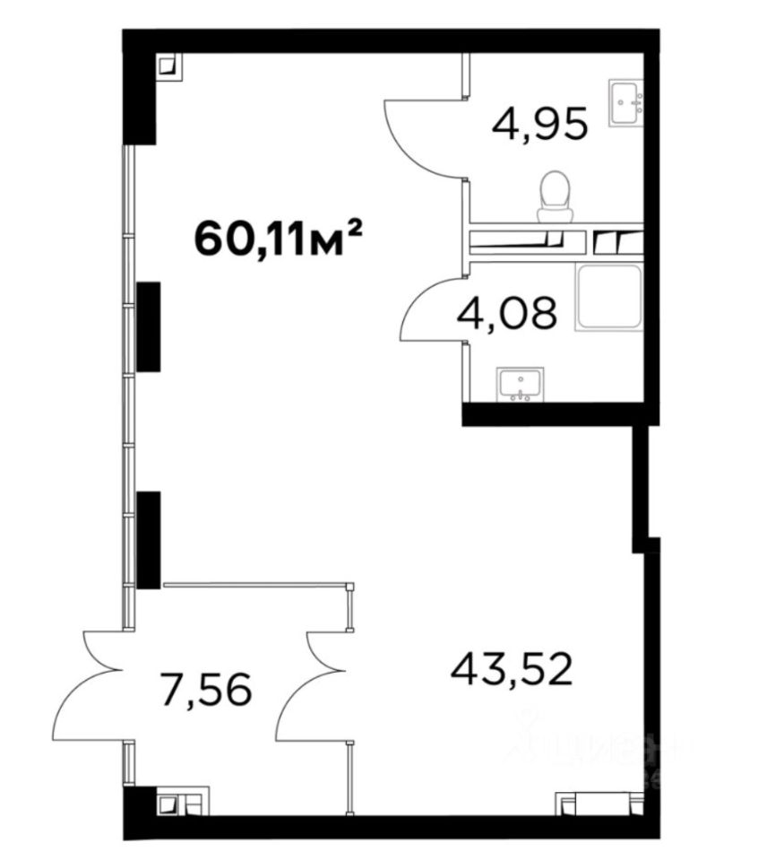 Арт. 92100696. ПСН | Аренда | 60.9 м² | м. Тульская (13 мин)