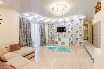 Романтическую обстановку создаст неповторимое освещение квартиры с подсветкой пола и потолка с регулировкой цветов по вашему вкусу.
