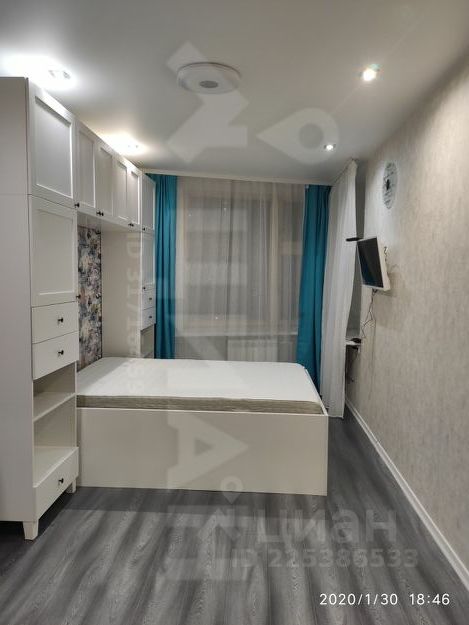 В комнате ТВ, кровать с подъёмным механизмом и сиситемой хранения.