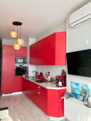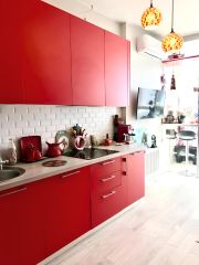 В квартире есть вся необходимая техника: холодильник, варочная поверхность, духовой шкаф, микроволновка, чайник, кондиционер, телевизоры, стиральная машина), а также мебель: кровать, раскладывающийся диван, большой шкаф в прихожей, кухонный гарнитур, стол, стулья, комоды, каминная зона.