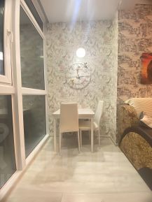 Одна комната- спальня с открытым балконом. Вторая: кухня-гостиная).