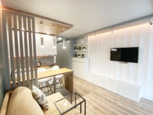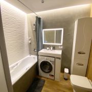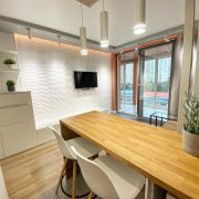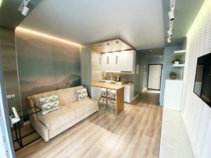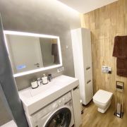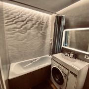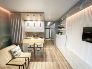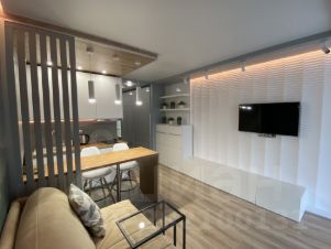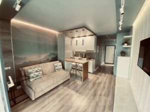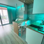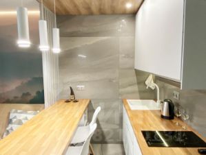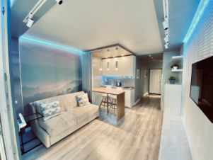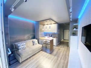 В квартире предусмотрены проходные выключатели, дизайнерский свет разных тональностей и яркости, который можно регулировать под настроение. Разные виды освещения, каждый для определенного времени суток и вида деятельности либо отдыха. Для Chillout эффекта применены RGB светодиодные ленты в скрытом исполнении в кухонной и жилой зоне, а в совмещенном санузле подсветка монохром. Кухонная часть студии оформлена выразительными приемами выделения пространства с разным функционалом. В зоне кухни предусмотрена барная стойка со стульями. Кухня оборудована варочной панелью, вытяжкой, микроволновой печью, чайником, а так же кухонной утварью. В жилой комнате на стене перед спальным местом размещен телевизор со smart TV. В квартире предусмотрен беспроводной интернет. В качестве места отдыха и сна предусмотрен двуспальный диван-кровать Askona. Очень удобно раскладывать и складывать, так же имеется ящик для хранения белья снизу. Квартира оснащена шкафами, как в коридоре, так и в жилой комнате и санузле. Предусмотрен современный встроенный холодильник с отдельной дверцей для морозилки. В квартире имеется напольный кондиционер, раскладная сушка, гладильная доска, утюг, фен и т.д. На дворовой территории имеется детская площадка. Вблизи дома расположены: Пятёрочка, Дикси, Азбука вкуса, Вкусно и точка и Бургеркиег. Через дорогу есть Аптека. Дом в 7-ми минутной транспортной доступности от м. Планерная.