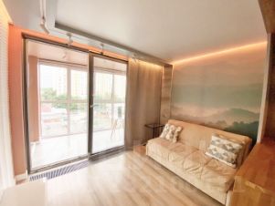 Здравствуйте! Сдам студию с дизайнерским ремонтом на 4-ом этаже в ЖК Планерный. Большое панорамное остекление от пола до потолка, широкий раздвижной энергоэффективный остеклённый портал между утеплённой лоджией и жилой комнатой (лоджию можно использовать как кабинет летом).