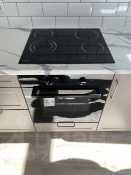 Большая светлая кухня, оборудована, вытяжкой, электрической панелью и духовым шкафом немецкой фирмы weissgauff; электрический новый чайник Bosh, холодильник No-Frost indesit; двухспальный раскладной диван Аскона; столом из натурального дерева.