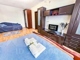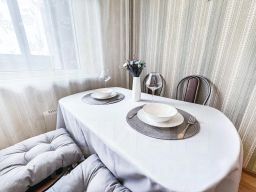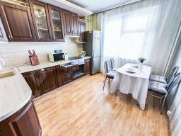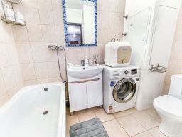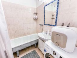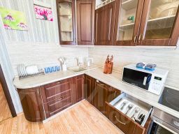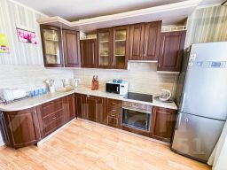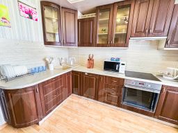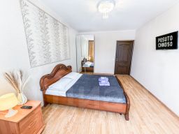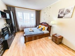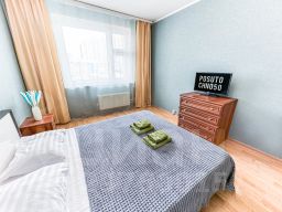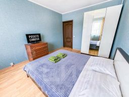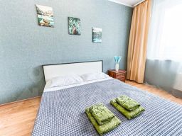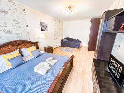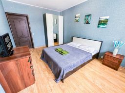 В апартаментах становлена двуспальная кровать с ортопедическим матрасом 160х200 см. В наличии бытовая техника: холодильник, плита, микроволновая печь, чайник, телевизор, стиральная машина, фен, утюг. Предоставляются чай, кофе, цифровое ТВ и высокоскоростной Wi-Fi. После каждого гостя проводится уборка с применением дезинфицирующих средств, заменой постельного белья и полотенец.