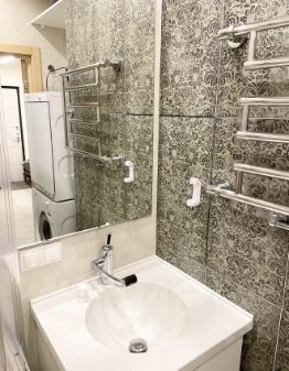 Санузел: большая глубокая ванна, встроенные стеклянные дверцы. В туалете умный унитаз с подогревом, подсветкой, биде с разными режимами. Стиральная и сушильная машины.