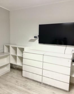 Спальня: шкаф с полками, выдвижными столиками, зеркалами на 2 стены комнаты. Жалюзи, шторы полный блэк-аут. Люстра с 3 режимами. Телевизор.
