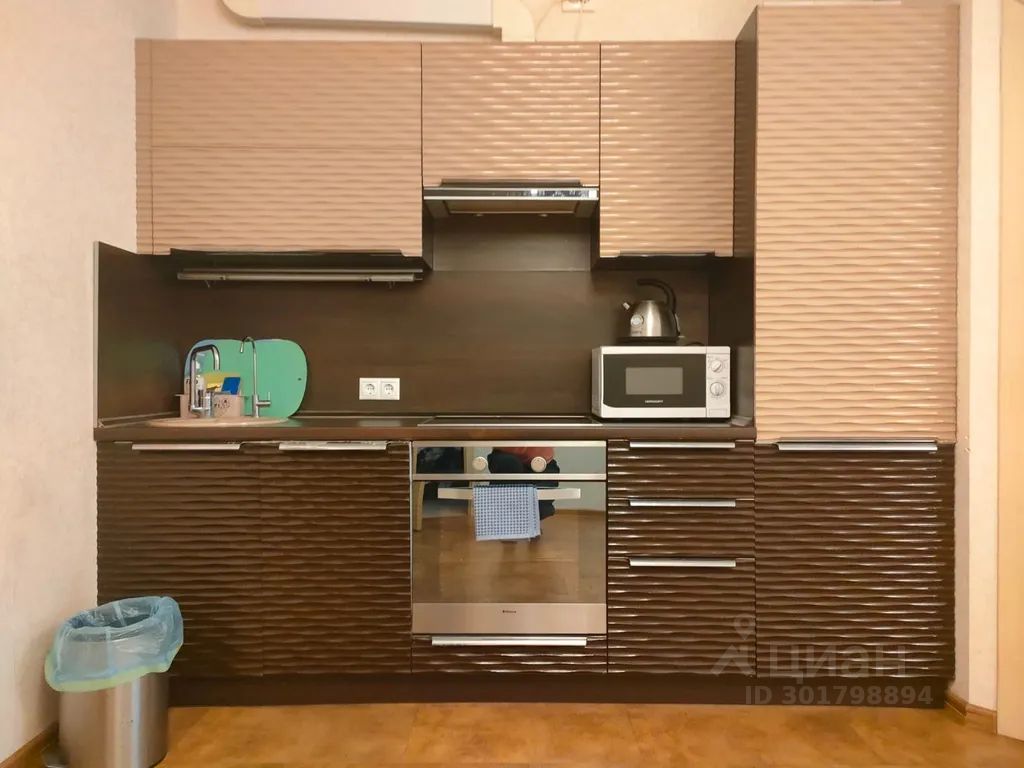 Гостиная-кухня: раскладывающийся двухспальный диван, большой стол со стульями, встроенная кухня с холодильником, варочная электро панель, чайник, микроволновка, вытяжка, фильтрацией воды. Вся посуда и принадлежности для приготовления еды и сервировки. Соль, сахар, чай, кофе всегда в наличии
