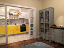 * Меньшая комната изолирована. Большая комната может быть как изолирована, так и использоваться как студия ( между комнатой и кухней раздвижные двери-купе;