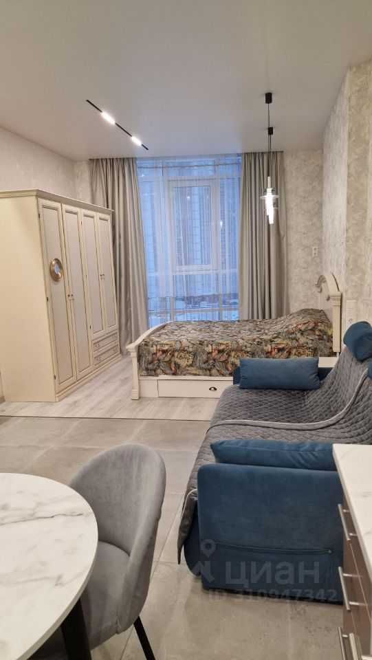 Сдается стильная и современная студия площадью 42 кв. м в новом доме 2019 года постройки. Квартира расположена на 6 этаже 42-этажного монолитного здания. Высокие потолки в 3.2 метра создают ощущение простора и свободы, а окна, выходящие во двор, обеспечивают тишину Сдается студия 42 кв.м. в доме бизнес класса ЖК МАЯК. Рядом обновленный парк им. Толстого и ухоженная набережная.