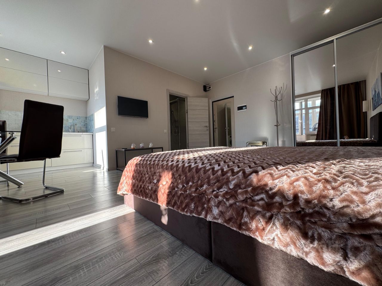 Квартира с дизайнерским ремонтом, полностью готова к проживанию. Пространство оформлено со вкусом: в вашем распоряжении вся необходимая мебель как в комнате, так и на кухне. Большая комфортная новая кровать с ортопедическим матрасом позволит вам полноценно отдохнуть после рабочего дня! Из техники есть холодильник, микроволновая печь, электроплита, электрический чайник, телевизор и стиральная машина. На кухне установлены фильтры очитки питьевой воды. Ванная комната оборудована душевой зоной, что позволит вам расслабиться после насыщенного дня.