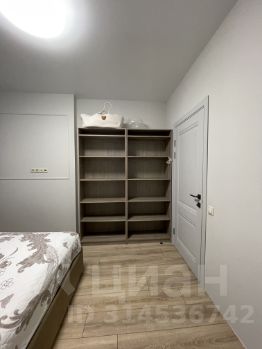 Спальня с двуспальной кроватью с подъемным механизмом, удобным высоким матрасом, большим шкафом.