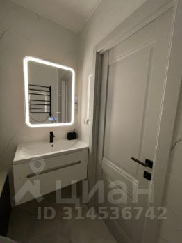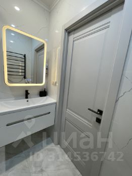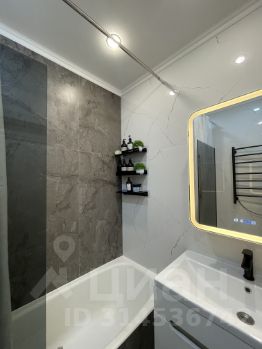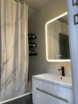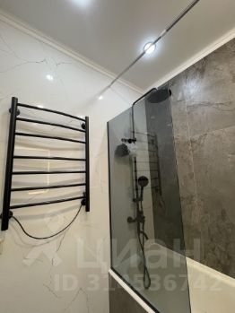 Ванная комната с электрическим полотенцесушителем, стиральной машинкой.