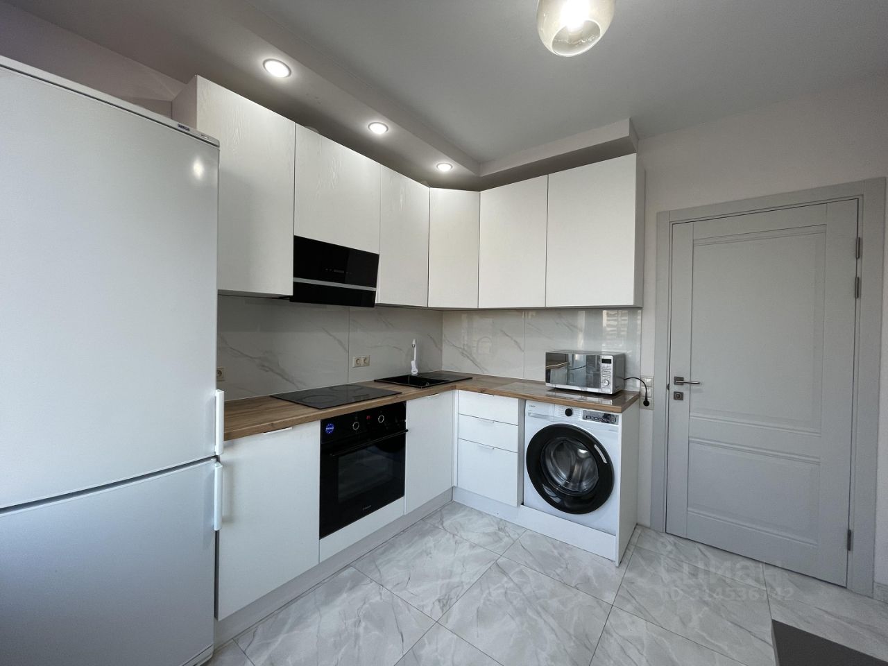 Кухня полностью укомплектованная техникой (духовой шкаф, варочная панель, вытяжка, холодильник, микроволновая печь, чайник).