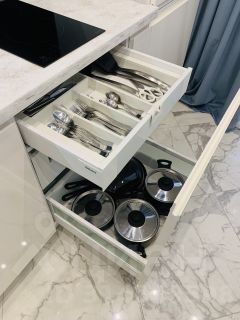 - Кухонный гарнитур со встроенной премиальной техникой и полным комплектом посуды