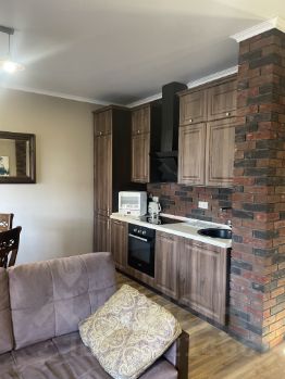 Большая гостиная с камином, комната изолирована с балконом. много мест для хранения. Сан узел совместный, имеется бойлер. Теплые полы с подсветкой.