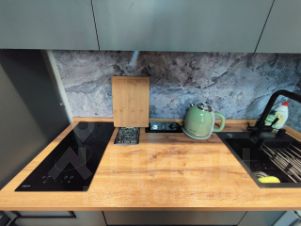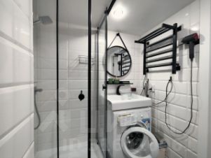 Из техники: холодильник, стиральная машина, варочная панель, СВЧ-печь, электродуховка, телевизор, кофе-машина. Установлен кондиционер. Спальные места: диван система кряк-кряк, на втором этаже двухспальная кровать. Предоставляется весь текстиль, полный комплект посуды. Санузел совмещенный установлена душевая кабина.
