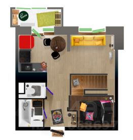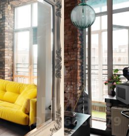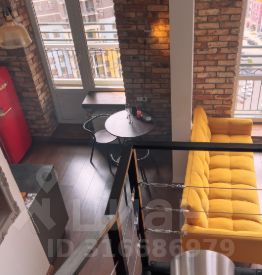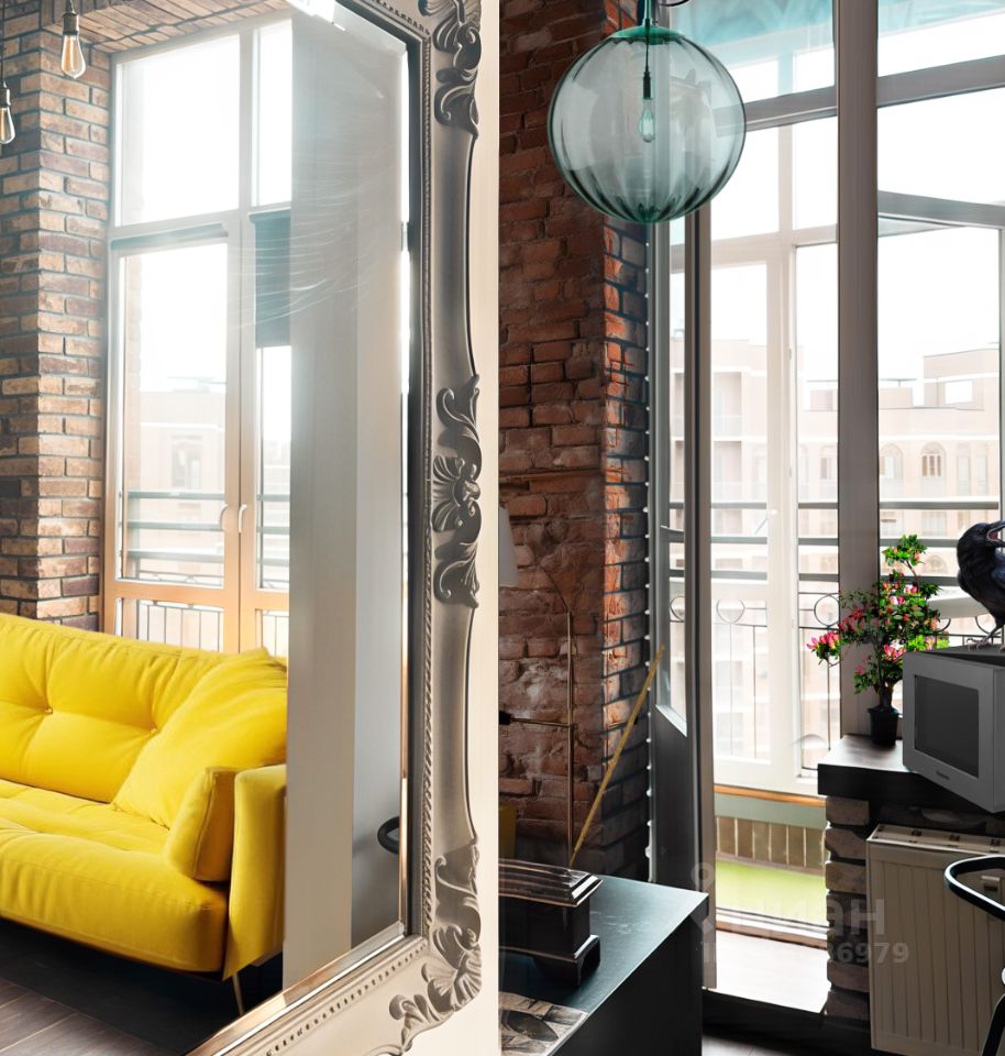 Итак, дизайнерский пентхаус AcidOra на последнем 17 этаже монолитного дома с потолками 3,8 метра, спальней на втором этаже, клинкерным кирпичом XIX века на стенах, панорамными окнами в пол с правильным видом на Вечерний Урбан, лоджией, раздельным санузлом, индустриальными светильниками и смесителями и красным ретро холодильником.