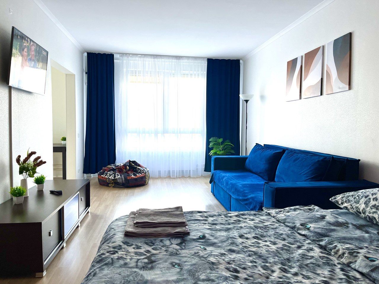 СВЕТЛАЯ И ПРОСТОРНАЯ ОДНОКОМНАТНАЯ КВАРТИРА В ДОМЕ БИЗНЕС-КЛАССА! ВМЕСТИМОСТЬ ДО 4 ГОСТЕЙ.