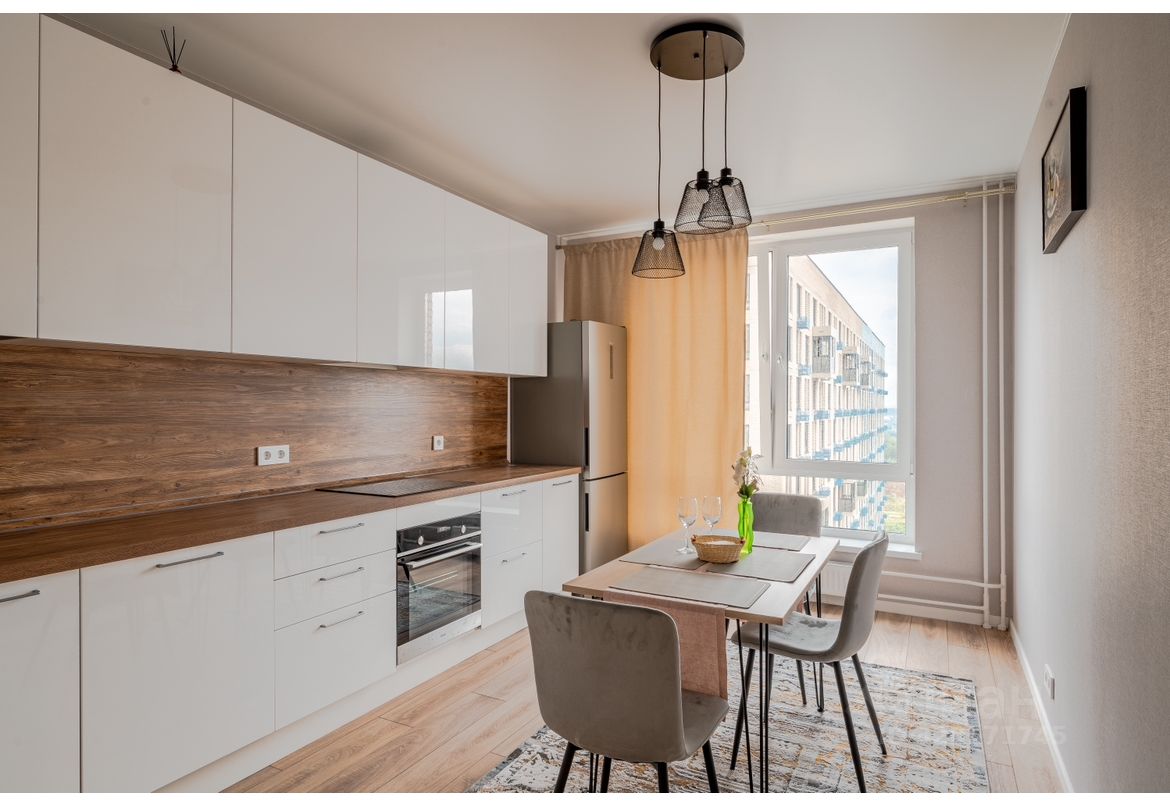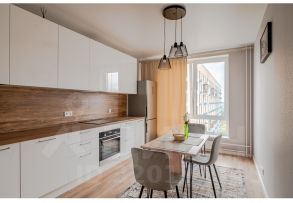 Светлая и уютная: окна на три стороны (двор, реку и посадочную полосу - вид на приземляющиеся самолеты!) Большая кухня 14 м² качественный гарнитур, широкая рабочая поверхность, новая встроенная техника (плита, духовка, посудомоечная машина, холодильник). Раздельный санузел, стиральная машина