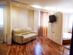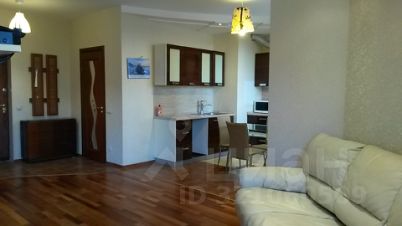 Квартира представляет собой большое пространство, разделенное на зоны. Кухонный гарнитур встроенный со встроенной техникой, обеденный стол со стеклянной столешницей и стульями. НОВАЯ двухспальная кровать, кожаный диван (не раскладывается), большой шкаф-купе. Просторная ванная. Застекленная лоджия.